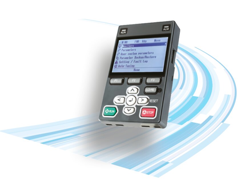 LA500-aandrijvingen kunnen worden geprogrammeerd en bediend met een extern grafisch toetsenbord met hoge resolutie. Ondersteuning voor 9 talen, een installatiewizard en de intuïtieve volledige tekstmenustructuur vereenvoudigen de installatie van de aandrijving en besparen kostbare tijd.