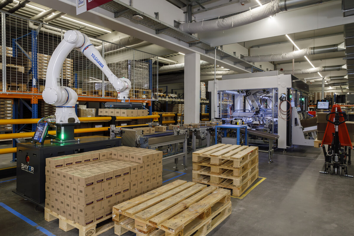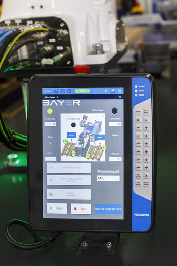 For the corresponding control unit, the “smart pendant”, Bayer has specially programmed a system-specific user interface. Even logistics employees without an automation background can now easily navigate the operation of the systems.